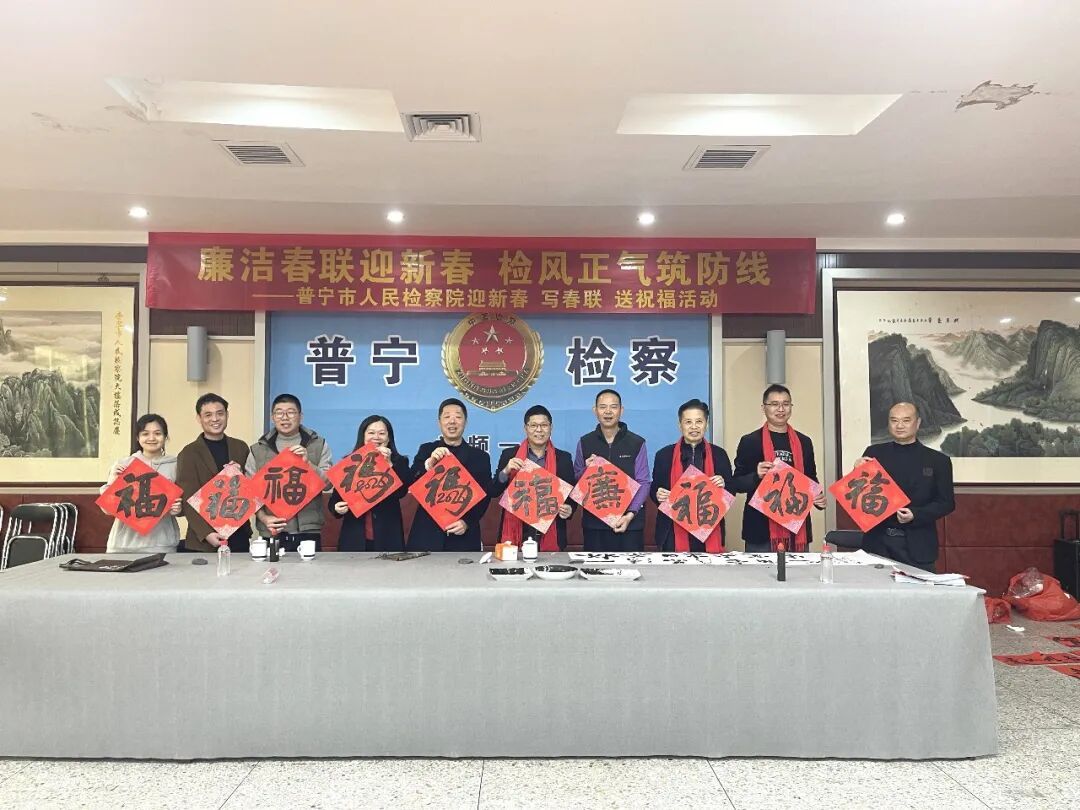 新春将至,年味渐浓。为深远学习贯彻党的二十大精神,领略中华英才优秀传统文化,加强新期间梗直文化斥地,营造崇廉尚俭、风清气正的节日氛围,2026年1月22日,我院开展“梗直对联迎新春,检风浩气筑防地”梗直主题对联迎春活动,邀请中国书道家协会会员、广东省后生书道家协会副布告长温锦照,普宁书院副院长、普宁书协学术委员会副主任黄念念侨,普宁书院副布告长、广东省书道家协会会员李伟龙等本市知名书道家现场为查察干警书写对联。