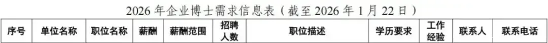附2026年部分企业博士需求信息表,握续更新中......