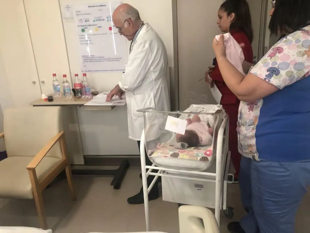 ▲在智利病院,刘雨晴生完孩子。医护东说念主员对更生儿进行全面检验,并在核实情况后署名阐发。(受访者供图)