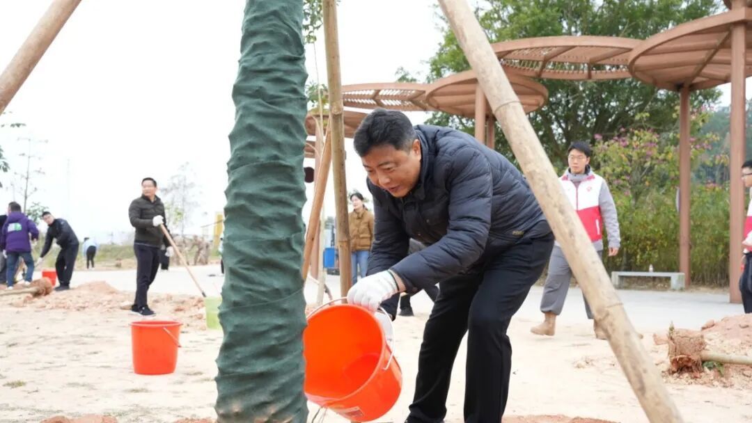 举止中,四会市委文书翁卓辉,四会市东谈主大常委会党组文书、主任梁祥达,四会市开辟范小普、梁俊杰与重大党员干部众人一同挥锹铲土、共植新绿。众人劲头完全、矜恤高涨,劳作的身影成为冬日里沿路亮丽的表象。历程辛勤苦作,一株株新栽树苗顶风挺立,为渔港湾公园增添了盼愿盎然,也为绿好意思四会诞生播种下新的但愿。